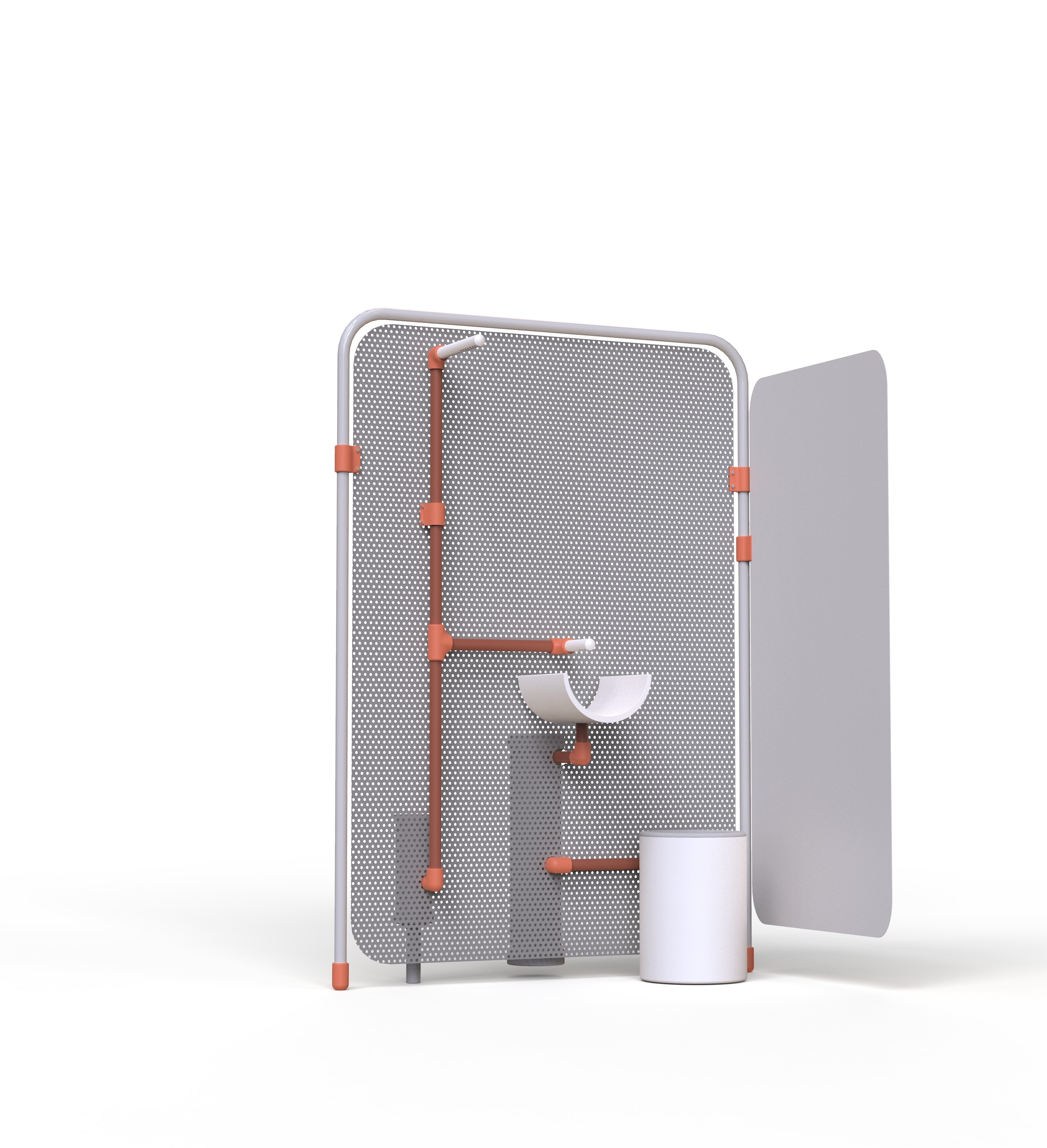 Third prize: "Kick" by Anil Choudhary (India, ARCHDUX). Mobile personal hygiene column with the option of integrating a grey water treatment and recycling system.