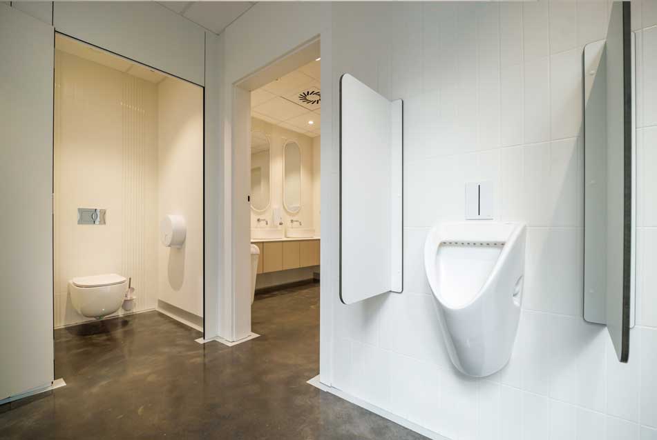 The project was overseen by the Municipal Conservator of Monuments, ensuring the architecture would add value to the area and be a model for future architecture. The business incubator supports the activities of local companies, often within the economic sector, and therefore required a range of private offices and communal spaces, including spacious co-working spaces, conference rooms, one of which holds up to 200 people, and an audio-video recording room for podcasts and interviews. The team worked with Roca on its plans for a series of communal and private bathroom spaces across the building. The bathrooms needed to reinforce the design’s focus on energy efficiency while appealing to a dynamic and contemporary setting.